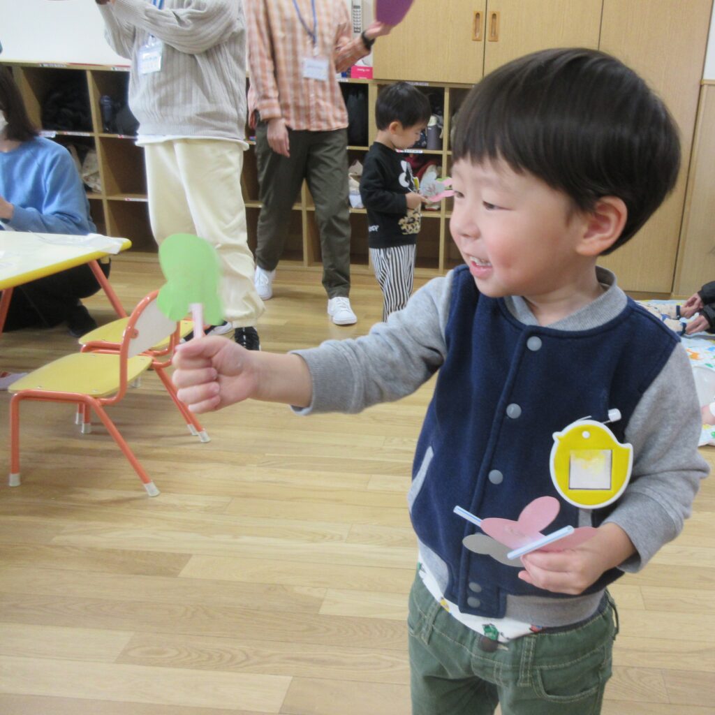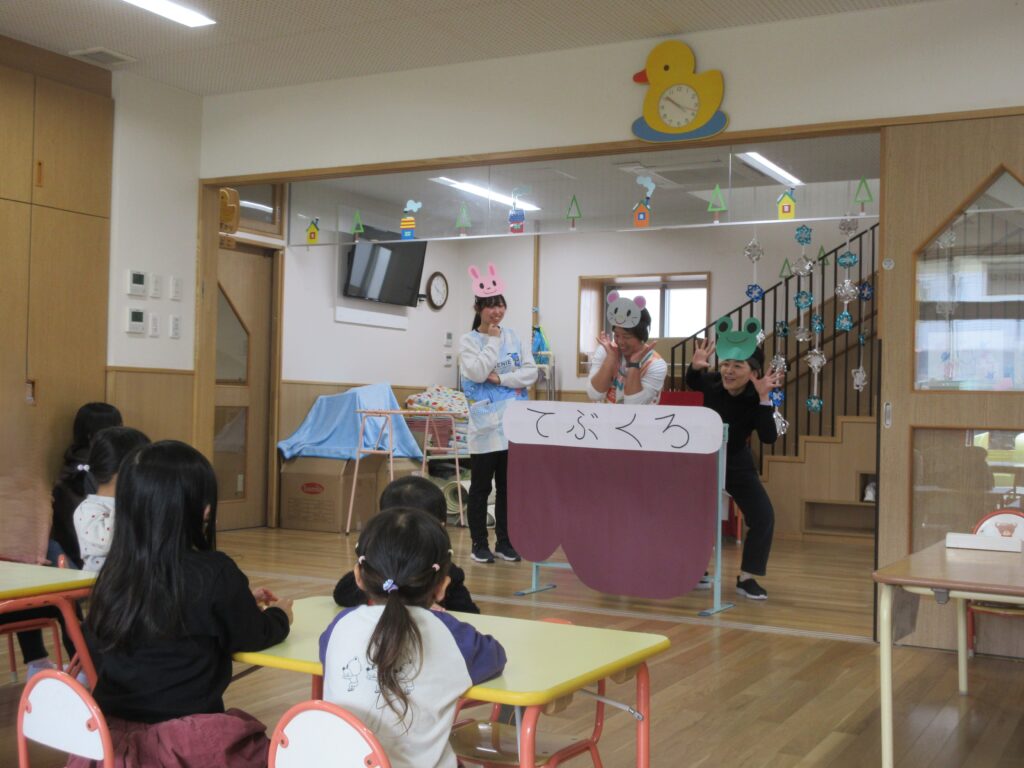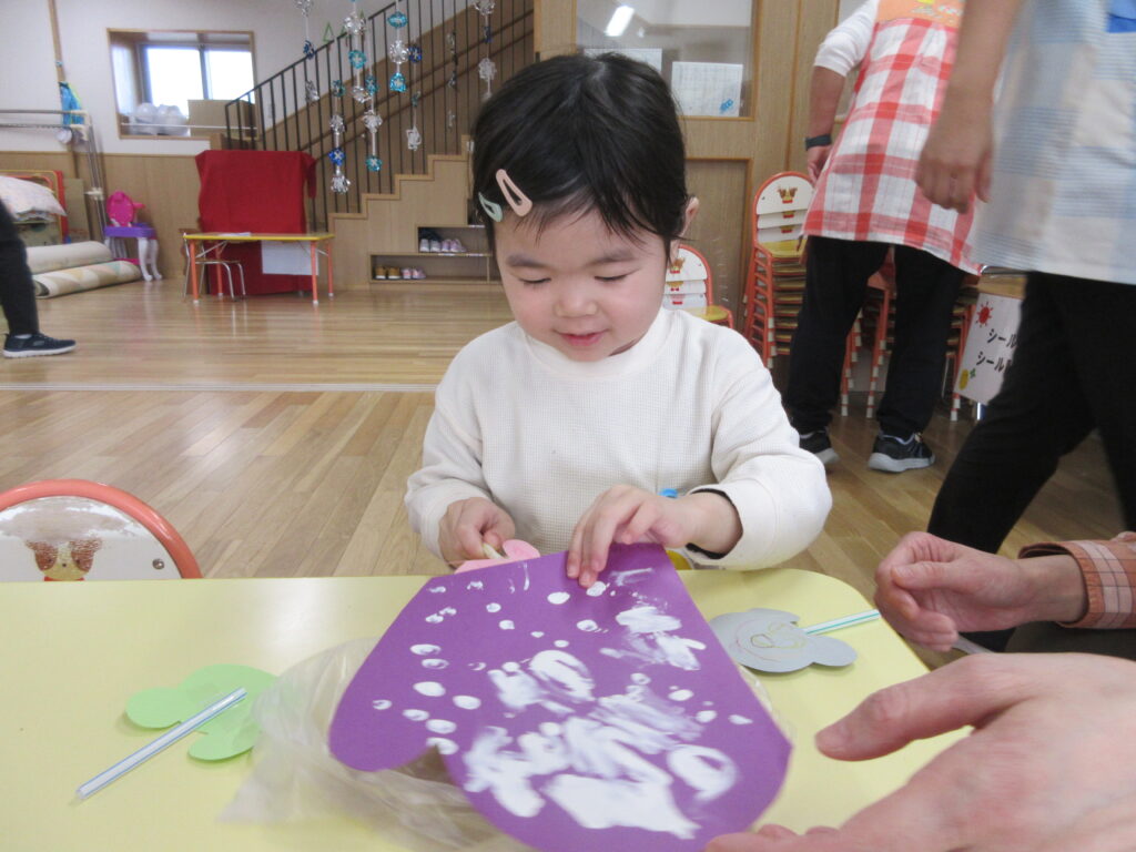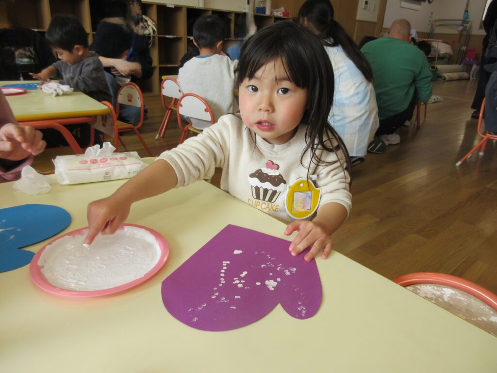 先生たちの寸劇を見た後、指スタンプ遊びをしました!